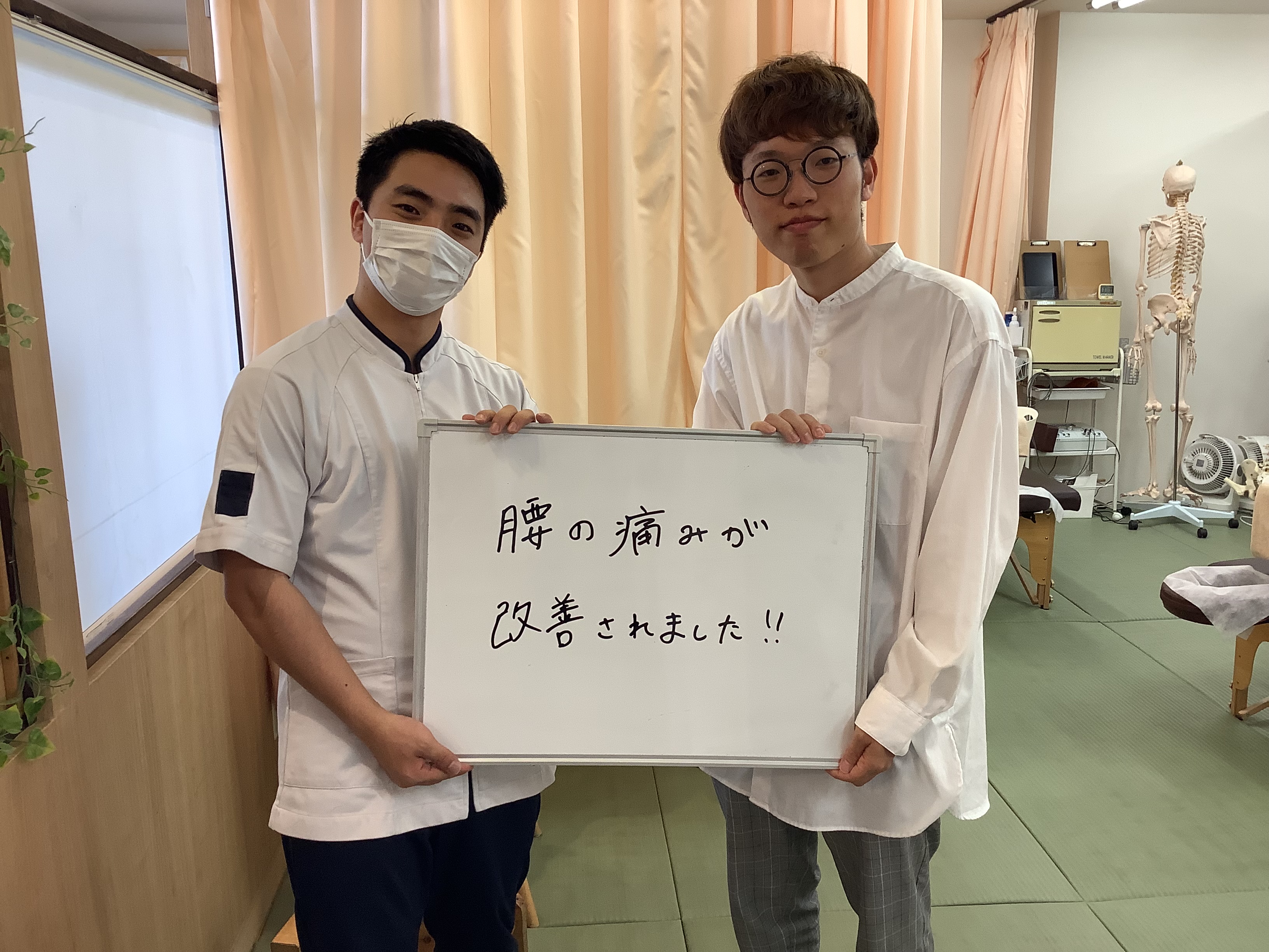 始めは長時間同じ姿勢でいると腰に痛みが強く出ていましたが、段々と痛みも落ち着き、長時間座っていても痛みが出なくなりました!